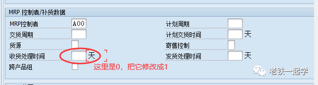 当前这个物料的收货处理时间是0,现在我们修改一下它的收货处理时间为1天,如下图5: