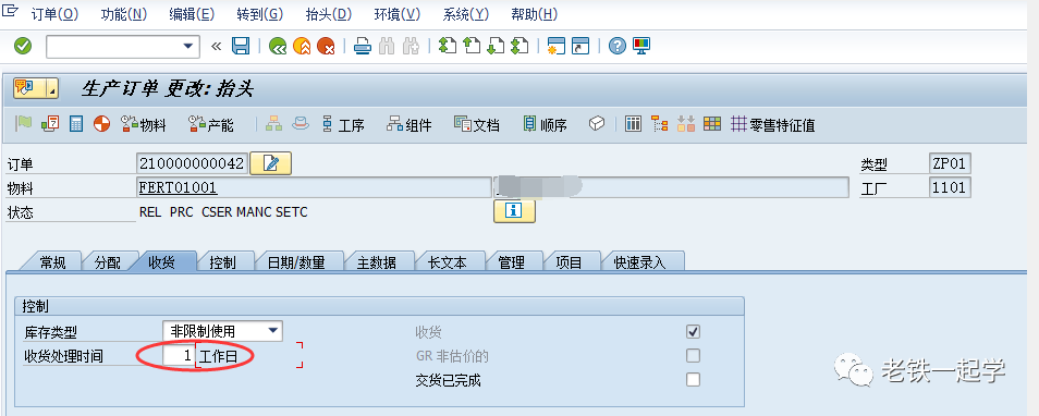 再来看这个生产订单,其他收货处理时间也是1天(后续创建的订单可以直接带过来,已经创建的需要手工修改),如下图6: