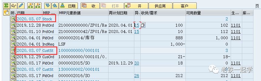 1、当MRP元素 库存类MRP元素( 有关MRP元素的说明请见上篇--MD04详细说明一),日期总是当前日期,也就是今天2020.03.07。