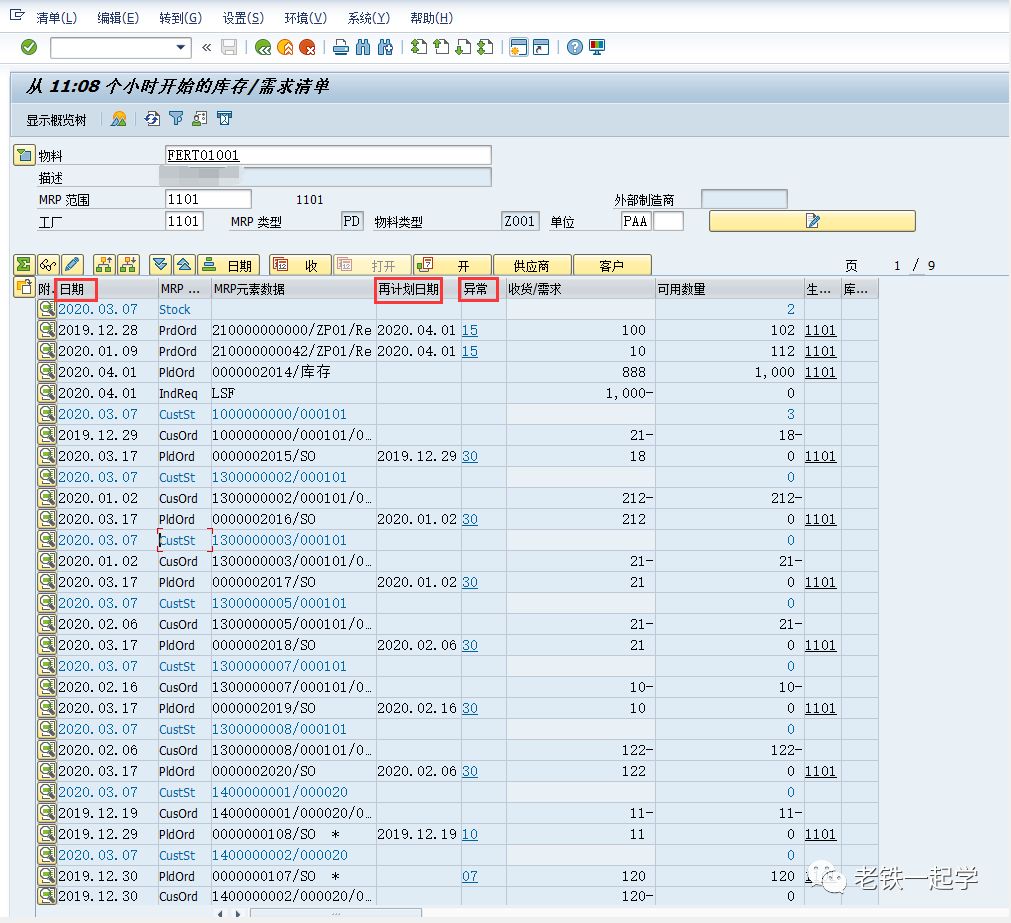 上篇介绍了MD04的MRP元素, 本篇主要介绍MD04中的日期、再计划日期及MRP例外消息。
