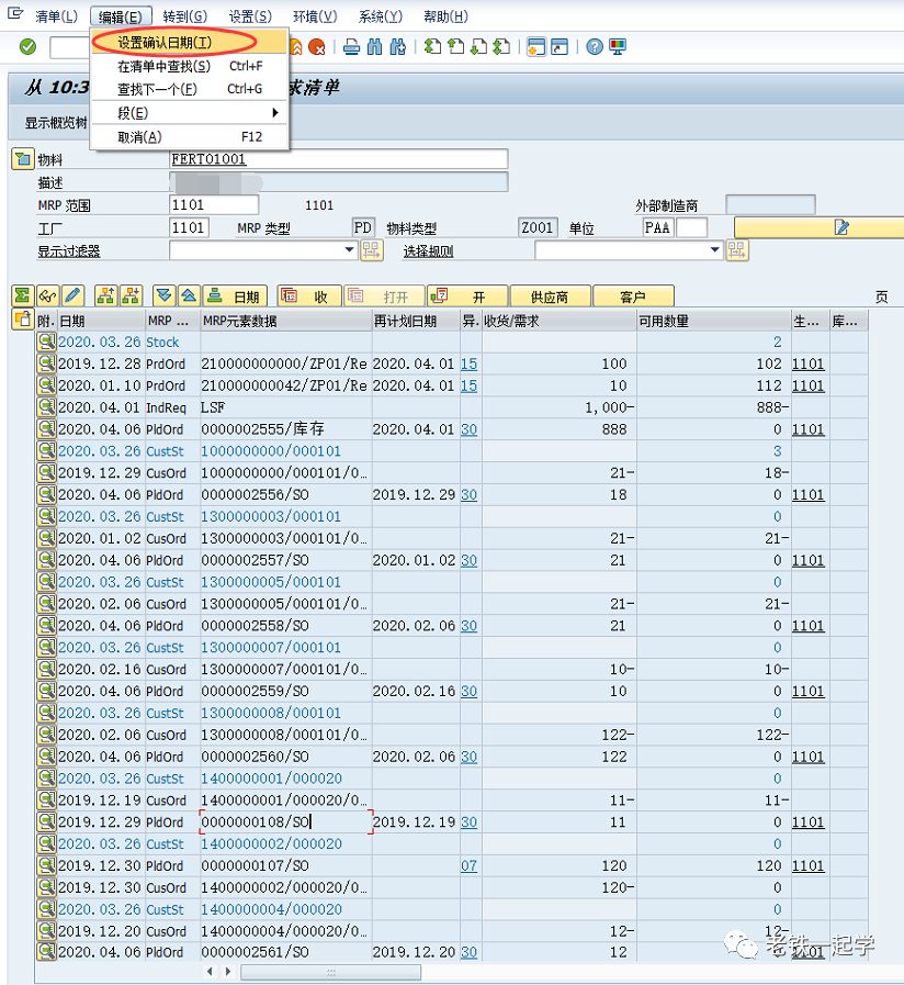 mrp元素对应的单据,还有追溯需求、订单报告等等。本篇介绍其他两个小功能:过滤器和设置确认日期。