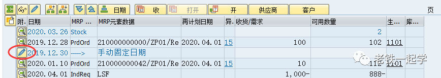 所以只是MRP运行时,多考虑了这个设置的确认日期,实际计划订单并没有改变。如果我们想修改/删除这个手工确认日期,可以点击刚刚MD04新增加的那一行数据前面的修改按钮: