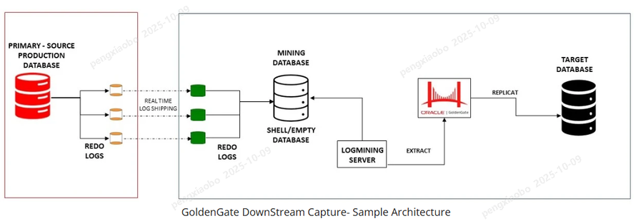 为了缓解问题或解决挑战并实现实时数据提取,ogg设计了GoldenGate下游捕获架构。通过GoldenGate下游部署,您可以将从源数据库提取数据的负担转移到中间或目标服务器。这种设计涉及从不同的数据库中提取数据,通常称为挖掘数据库。
