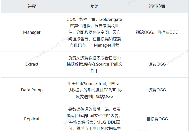 不管是源端还是目标端必须并且只能有一个Manager进程,可以启动、关闭、监控其他进程的健康状态,报告错误事件、分配数据存储空间,发布阀值报告等。