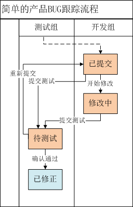 测试人员发现bug后,提交到缺陷跟踪软件中(urtracker)。开发人员收到bug后进行处理。处理完成提交给测试人员测试确认。测试人员确认后关闭,或者返回给开发人员重新处理。