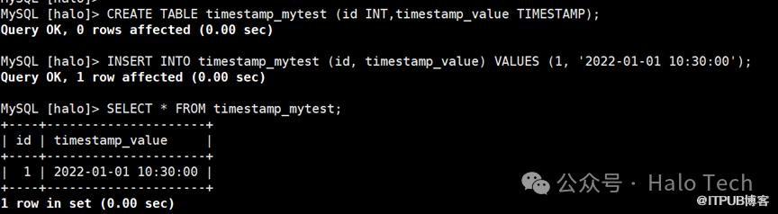 CREATE TABLE timestamp_mytest (id INT,timestamp_value TIMESTAMP);INSERT INTO timestamp_mytest (id, timestamp_value) VALUES (1, '2022-01-01 10:30:00');SELECT * FROM timestamp_mytest;