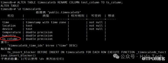 ALTER TABLE timescaletb RENAME COLUMN test_column TO ts_column;\d timescaletb