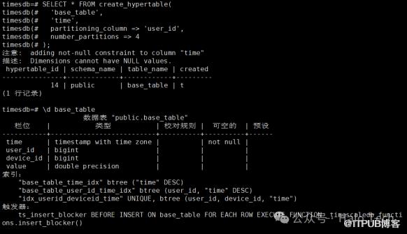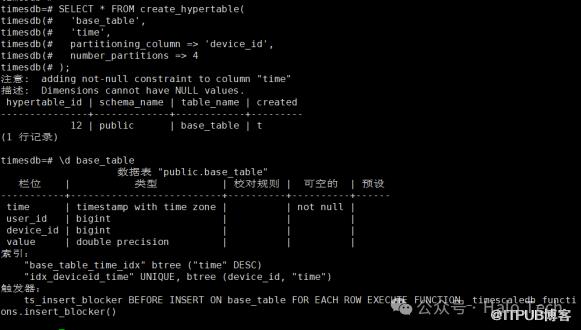 也可以将已经创建好索引的 base_table 表转化为以 time 和 device_id 为分区列的 hypertable