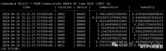 SELECT * FROM timescaletb ORDER BY time DESC LIMIT 10;