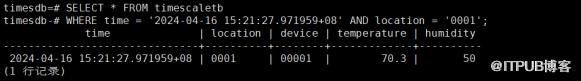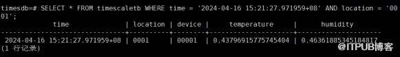 SELECT * FROM timescaletb WHERE time = '2024-04-16 15:21:27.971959+08' AND location = '0001';