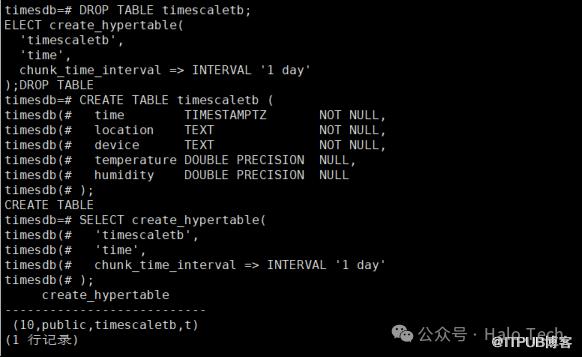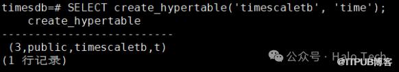 然后使用create_hypertable函数将普通PG表转化成Hypertable超表: