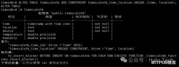 ALTER TABLE timescaletb ADD CONSTRAINT timescaletb_time_location UNIQUE (time, location);\d timescaletb