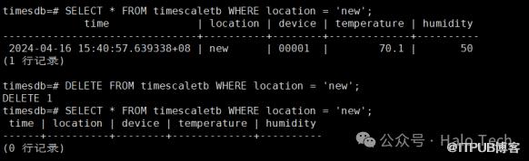 SELECT * FROM timescaletb WHERE location = 'new';DELETE FROM timescaletb WHERE location = 'new';SELECT * FROM timescaletb WHERE location = 'new';