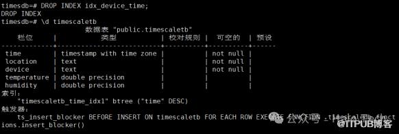 DROP INDEX idx_device_time;\d timescaletb