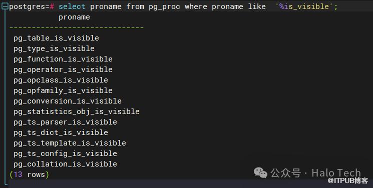 SELECT proname FROM pg_proc WHERE proname LIKE '%is_visible';