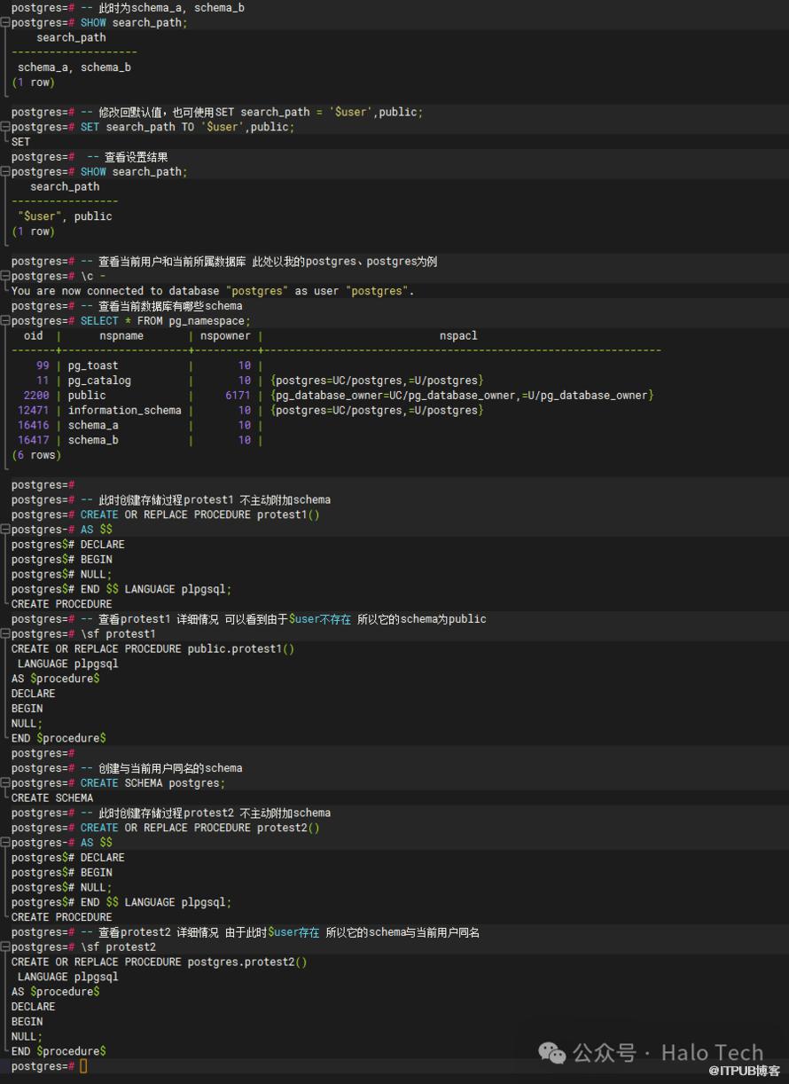 阅读到此处应该对search_path的使用有了一个大概的了解。那么在PostgreSQL内部,以此处的函数或存储过程(在内部其实一样的处理逻辑)的创建为例,研究下search_path是如何辅助pg数据库确认该使用哪个schema的呢?