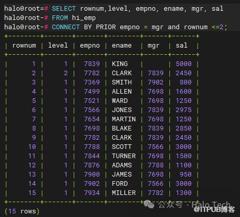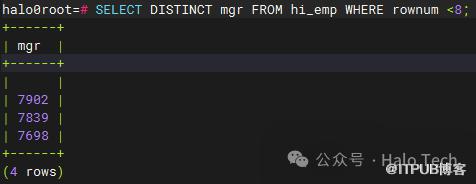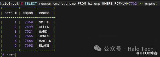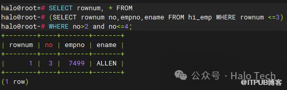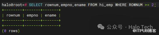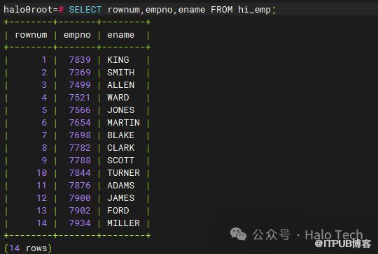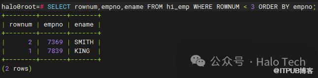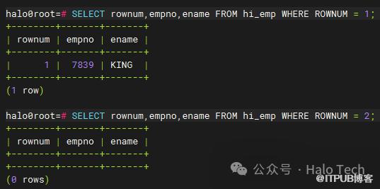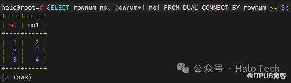 跟oracle一样,Halo数据库系统顺序分配为从查询返回的行的编号,返回的第一行分配的是1,第二行是2,依此类推。如下图所示:
