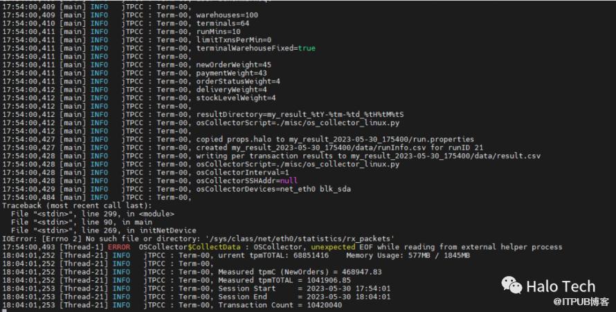 conn=jdbc:halo://ipaddress:1921/db_namewarehouses=100 #使用 100 个 warehouseloadWorkers=30 #导入数据的并发数terminals=64 #并发数runMins=10 #压测10分钟