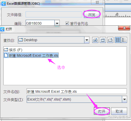 通过条码打印软件的数据库按钮,添加Excel数据源,在弹出的窗口中,点“浏览”找到你的Excel文件添加进来。一般的Excel文件编码选择默认的“GB18030”即可。关于首行含列名,如果Excel数据表中的第一行是列名称,选择勾选“首行含列名”,如果第一行是数据,不勾选。