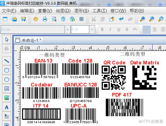 一维码和二维码分别有自己的条码码制和组成成员,常用的一维码:128码、EAN码,交叉25码、UPC码、ISBN码、Codabar(库德巴码)等等,常用二维码:QR Code、data Matrix、PDF 417。