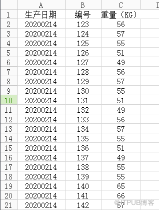 如下图excel表数据,有三列数据,分别为生产日期,编号和重量,如果想将每一行的三个数据组合生成一个条码。一般有两种方法:一是直接在excel表中利用公式将三列合并为一列数据,然后将合并的数据通过数据导入 条码生成软件中批量生成 条形码,另外一种就是不需要对 excel数据进行合并,直接导入条码生成软件 生成条码。