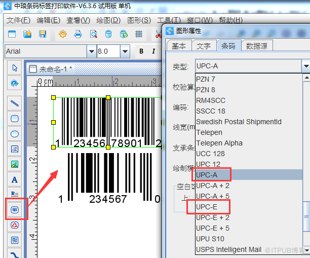 UPC-A码和UPC-E码制作: