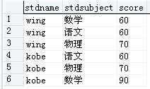 通常我们用 select stdname,stdsubject,socre from scores查出来的结果是: