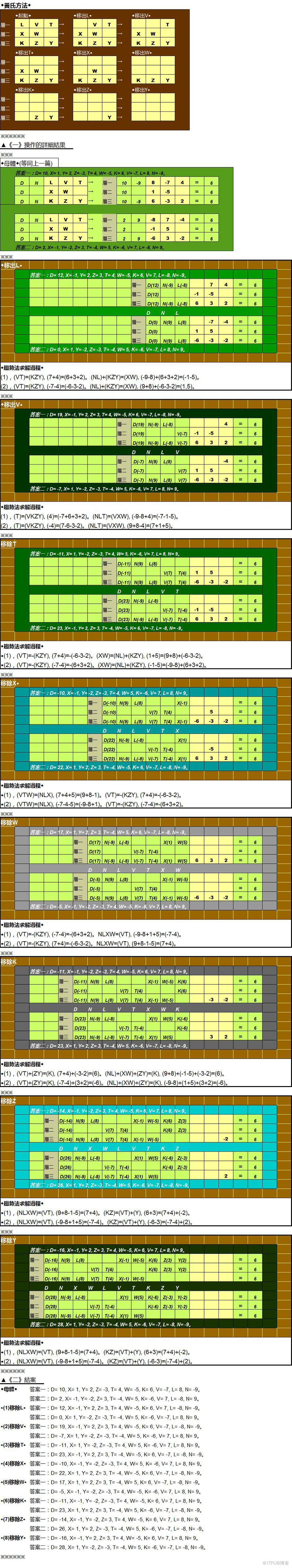 ★特別指出,也可能因L移的錯位,九宮格子體內的負數,沒有一個是與九宮格母體相同的。但是,答案一和答案二的元素碼X,Y,Z,T,W,K,V,L,N,也是互為相反數,例如,答案一的X=1, 答案二的X=-1。
