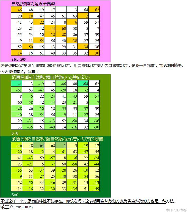 上海:范寶興8階自然數/類自然數(lzrs)雙向幻方