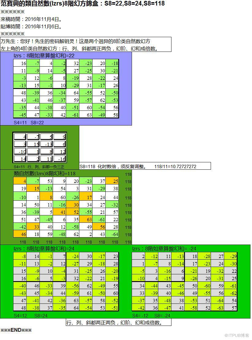 范寶興的類自然數(lzrs)8階幻方錦盒:S8=22,S8=24,S8=118