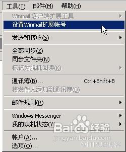 在outlook express或outlook2003中要先加入你的winmail的邮件帐号,然后在工具菜单中点击设置winmail扩展帐号。如图