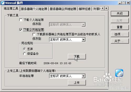 五、选中下载公共地址簿,然后点击下载按钮,在winmail公共地址簿中的地址就会到你本地中的地址簿中了。