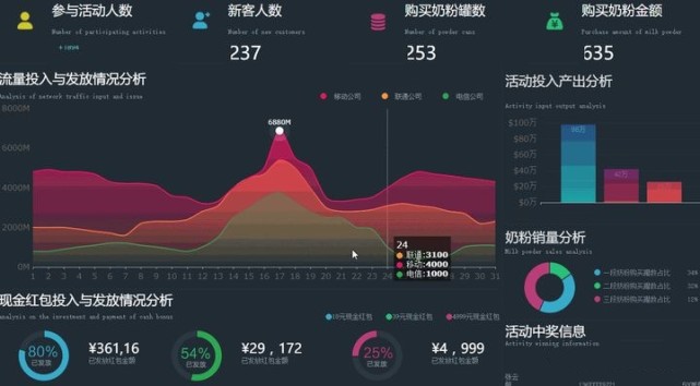 动态数据可视化:能够实现动态实时数据的更新与展示,除了时间序列数据,还有动态路径数据、实时轨迹数据等等,比较专业,代表工具为ECharts等;