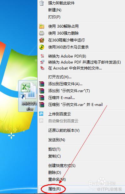 如果是通过快捷方式打开excel文件,可以通过快捷方式查看文件夹位置。右击excel文件快捷图标,点击属性菜单。