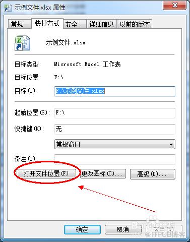 在excel文件快捷方式属性界面中,点击打开文件位置按钮可以进入excel文件所在文件夹。