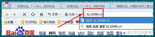 首先打开你的浏览器,我们在地址栏输入你所在的城市的网上营业厅地址,如图所示,地址的格式都是所在的省的拼音首字母+10086+cn。比如你是湖北的号码,你要输入的是:hb点10086点cn。图中看到的地址是北京的移动网址