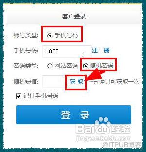 同样是勾选手机号码,然后选择【随机密码】,点击下面的【获取】