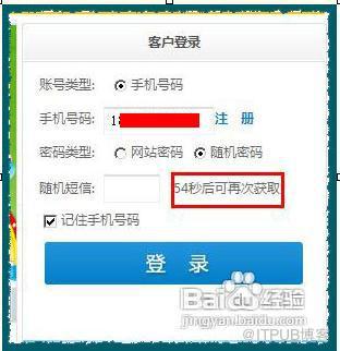 不一会你的手机会受到短信:随机短信密码为:606449;输入该密码。改密码的有效期是一分钟,过了一分钟就得重新点击获取密码了。
