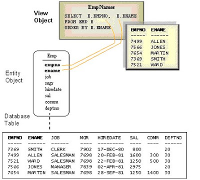 These objects contain a SQL query that queries the data from database and present it in the OAF page. VOs can be based on one or many EOs or a SQL query. Two VO can be linked together through a View Link.