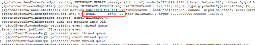 根据文档HAIP Fails to Start as GIPC Has Rank 0 or -1 for Interconnect (Doc ID 1374360.1),bond1私网发生”rank -1”或着”rank 0”就说明私网有故障发生.