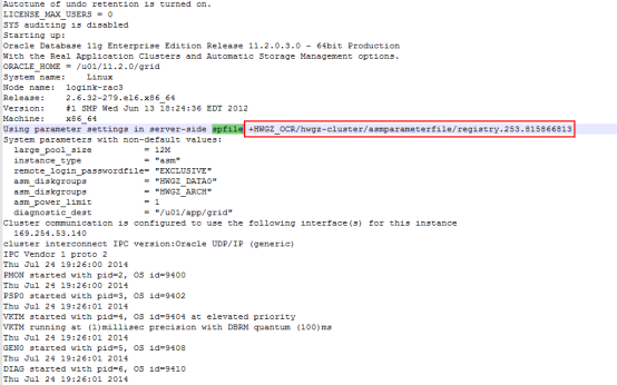 .*spfile=' +OCRDG/hwgz-cluster/OCRFILE/spfile.ora'