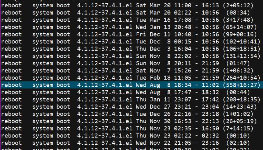 由于发生多次,查看last reboot: