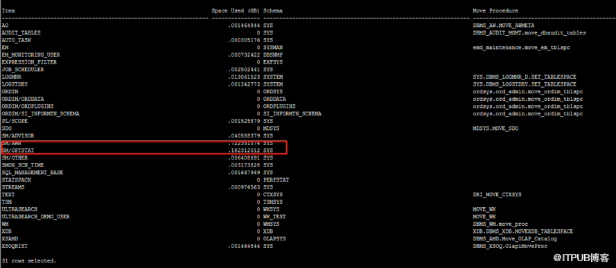 应该是AWR和统计信息消耗了SYSAUX表空间。
