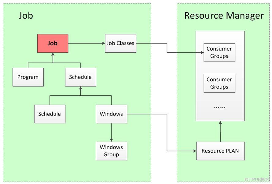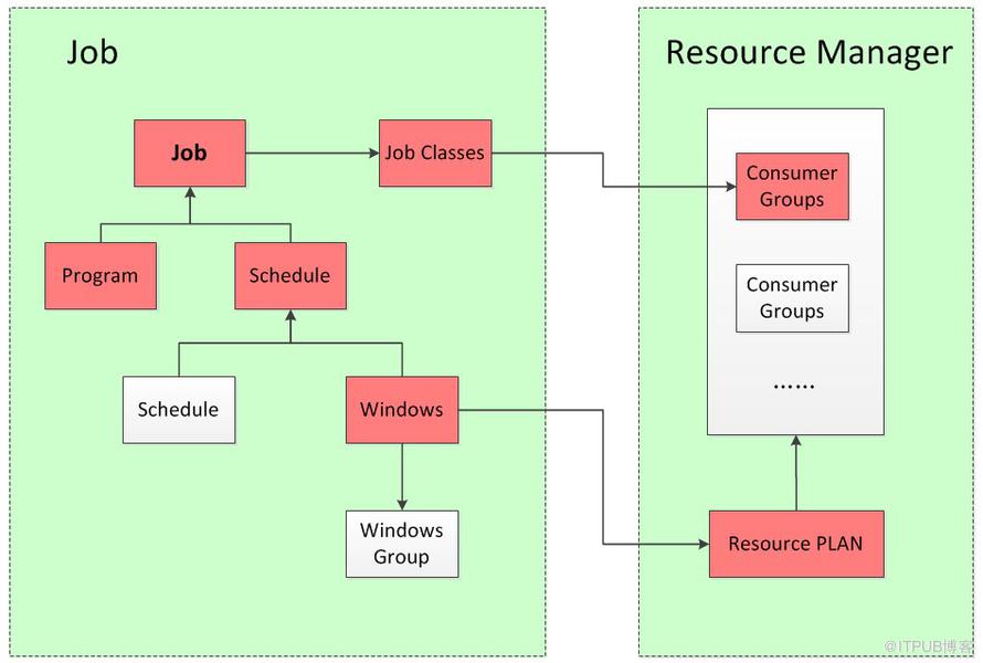 了解Job和Resource Manager之间的关系最好的方式莫过于Oracle EM工具。这篇文章通过图解的方式来简单讨论一下两者之间的关系,该图即是通过Oracle EM工具整理出来的。