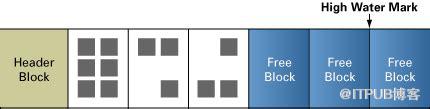 在HWM之下的数据块也可能存在空闲的情况,当数据被删除时,数据块被释放重新回到FreeList,又可以被其它数据变更所用,HWM通常只能向上增长,不会自动收缩。