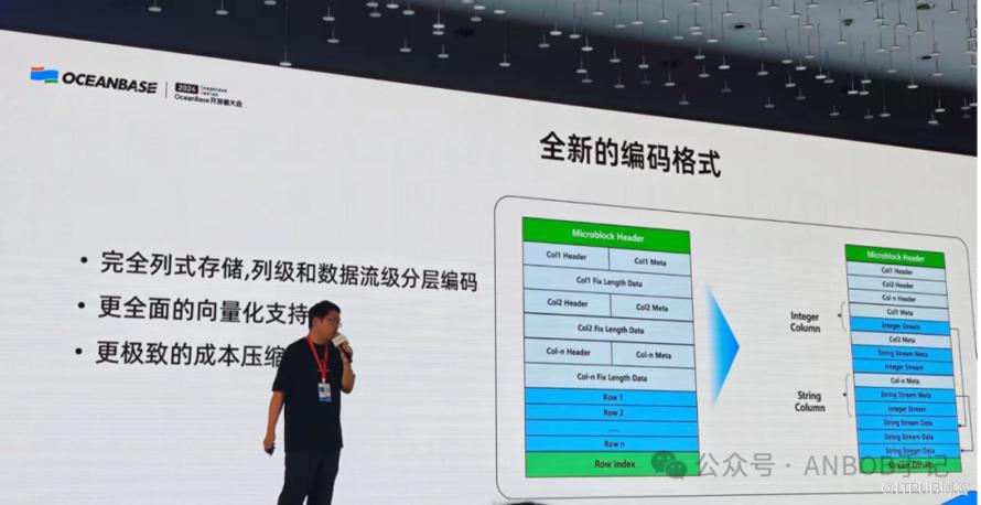 Oceanbase是基于LSM-Tree架构所以在列存方面有更多的优势,引入行存、列存、行列混存增强了AP场景的适配性,不再局限于TP + 轻量化 AP 的版本定位,推出的列存向量化引擎,支持大宽表的处理,新增物化试图提升实时查询处理与处理, 并且现场与Clickhouse新版测试打分,已经处于同等水平。
