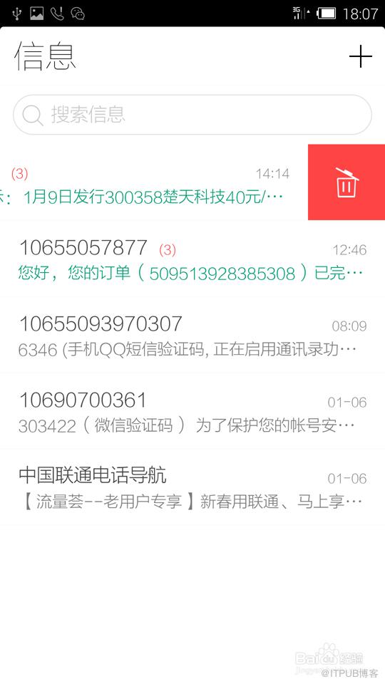 4)短信界面,简洁大方。像这种红色垃圾桶删除动画,都是神来之笔。