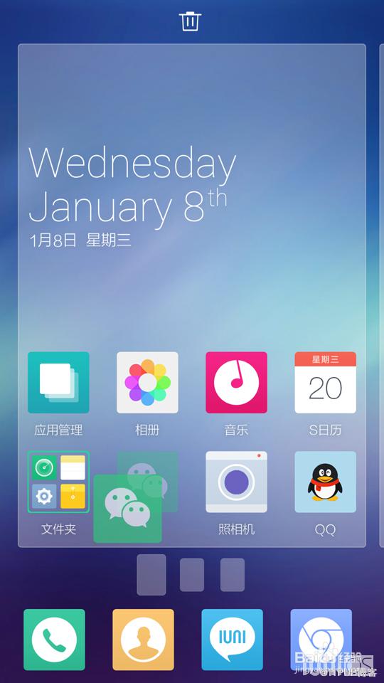 1)iuni最强大的功能就是桌面编辑,它可以使图标立即移到你希望的桌面,这点功能可以说超越了苹果,MIUI,等系统。