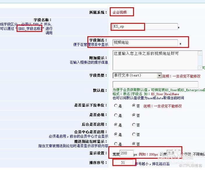 点击字段管理后弹出下图,我增加了个Ks_sp的字段,这个字段等下可以通过{$KS_sp}这个标签调用