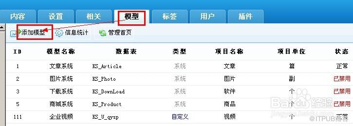 配置好站点之后,登录网站后台,点击模型-添加模型,我已经添加了个企业视频的模型,如下图